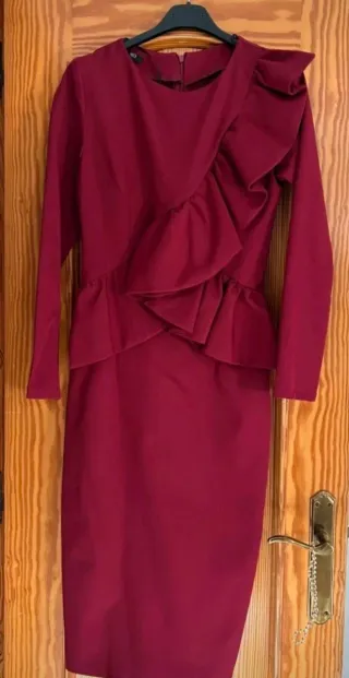 Abito indossato una sola volta, per poche ore. Vestibilità aderente e lunghezza fino al ginocchio. Taglia XS/34
