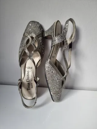 Eleganti scarpe da festa per donna. - Design con paillettes. - Cinturino alla caviglia con chiusura a fibbia. - Finitura brillante. Usate solo una volta per un matrimonio, in perfette condizioni.