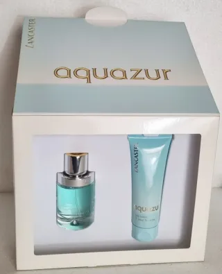 Set di fragranza e cura corpo di Lancaster. - Eau de Toilette Aquazur. - Lozione corpo Aquazur. Flacone spray da 50ml più lozione corpo 75ml. In perfette condizioni provenienti da vecchia farmacia per chiusura. Scatola con segni di conservazione. "ATTENTI AL MIO PROFILO, CARICHERÒ PIÙ PRODOTTI FUORI CATALOGO"
