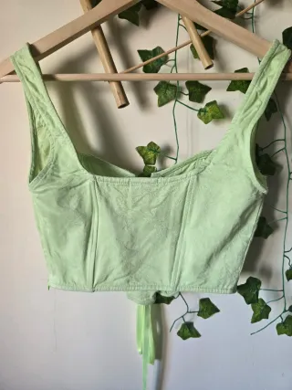 Corsé di Stradivarius, parte della collezione x Bridgerton. Un design accattivante con un tocco romantico. Chiusura con lacci nella parte anteriore, spalline larghe, tessuto con texture.