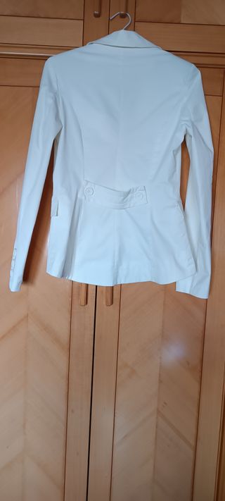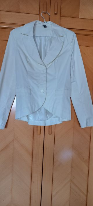 Giacca blazer elegante in colore crudo. Un capo versatile per ogni occasione. Design classico, chiusura con bottoni, tasche frontali, colletto con revers, con elastan.