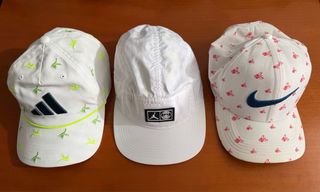 Vendo tre cappelli ben conservati, ecco le referenze: Adidas SUMMER OPEN GOLF HAT, Jordan x PSG 'Awed' 5-Panel cap, NIKE Aerobill Classic 99, cappello da golf.