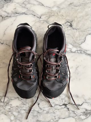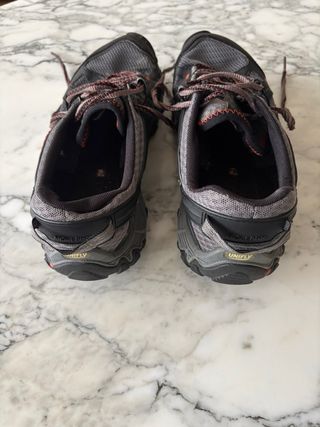 Sneakers Merrell da montagna in taglia 41. Perfette per le tue avventure all'aperto. Combinazione di colori nero e rosso. Design sportivo e funzionale.