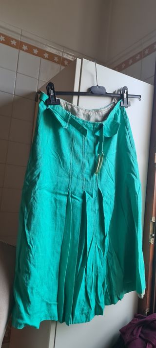 gonna corta nera - Luisa Spagnoli Gonna corta Firmata: Luisa Spagnoli Composizione: 100% pura lana vergine Fodera: 63% acetati, 37% viscosa Tessuto di grossezza media, la trama forma delle righe in rilievo Modello con spacchetto dietro Apertura dietro con zip e bottone Taglia: 44 Giro vita: 72 Lunghezza: 51 compresa la cintura Giro fianchi: 100 Condizioni: usato ma in stato più che buono. Sembra nuova