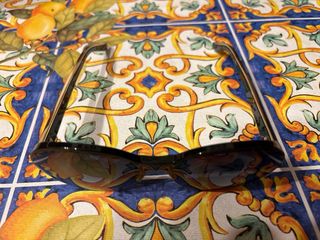 Occhiali da sole da donna con montatura nera e dettagli multicolor. - Montatura in acetato. - Lenti sfumate. - Design elegante e moderno.