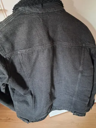 Caldo giubbino in denim con fodera interna in pelliccia. - Collo in pelliccia. - Chiusura con bottoni. - Due tasche sul petto. - Tasche laterali. - Modello fantastico, spalla 51.5 cm, torace 120 cm, lunghezza 72 cm, lunghezza maniche 69 cm, circonferenza braccia 49 cm, taglia XXL perché lo volevo comodo. Usato pochissime volte, sono alto 1.78.