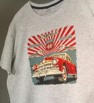Maglietta da uomo con stampa grafica a tema Route 66. Nuova.Taglia L e misure dettagliate in Foto. - Stampa raffigurante un'auto d'epoca rossa e elementi grafici retrò. - Design con scritta Garage Service Route 66 Repair e chiavi inglesi. Codice M46