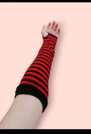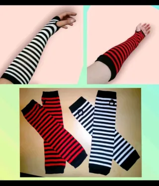 Set di due paia di guanti lunghi a mezze dita con un design a righe. Misure: 31x 8 cm Alla moda,pratici e comodi. Nuovi mai indossati Codice S28 - Righe nere e bianche. - Righe nere e rosse. - Design punk.