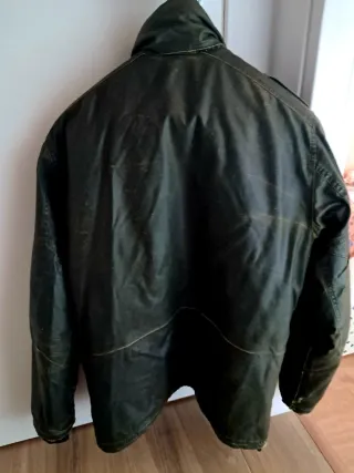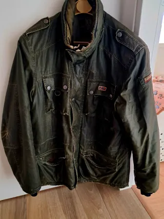 Parka stile Barbour, un capo versatile e resistente. - Tessuto cerato. - Dettagli con bottoni. - Tasche frontali. - Patch con logo.