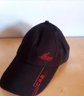 Cappello da baseball nero con dettagli rossi. Nuovo mai indossato. - Scritta CAP sul davanti. - Dettaglio Sport Style sul davanti. - Scritta CAP sul lato. Codice C35