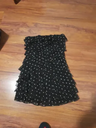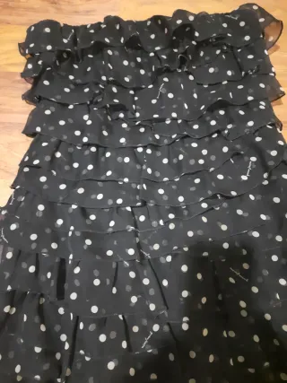 Elegante abito corto con fantasia a pois e dettagli a balze. - Tessuto leggero e trasparente. - Design senza spalline. - Orlo a balze.
