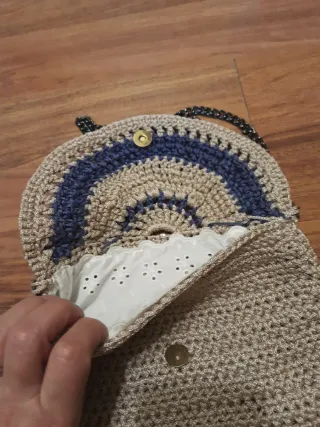 Borsetta uncinetto beige e blu