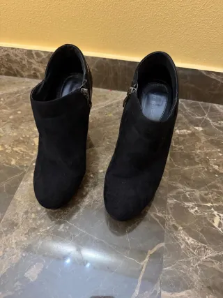 Eleganti stivaletti neri con un design moderno. - Materiale scamosciato. - Zip laterale per una facile calzata. - Tacco robusto per un comfort duraturo.