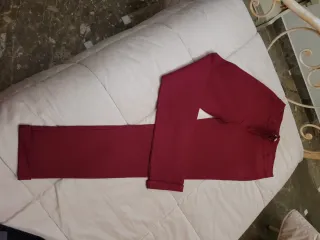 Pantaloni eleganti di colore rosso. - Vita con passanti per cintura. - Chiusura con zip e bottone. - Tasche anteriori. - Fondo con risvolto.
