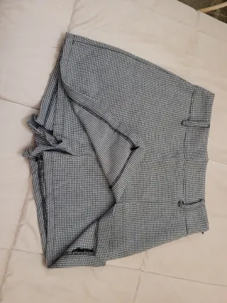 Gonna corta con fantasia a quadri. - Tessuto leggero. - Vita alta. - Dettaglio con passanti per cintura.