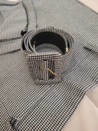 Mantella beige e nera con spilla