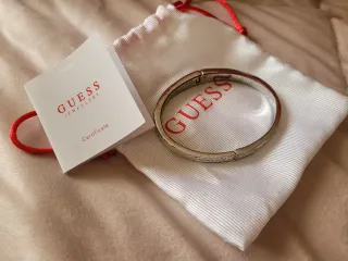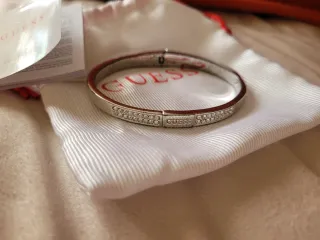 Elegante bracciale rigido Guess, perfetto per aggiungere un tocco di luce al tuo look. - Design con strass scintillanti. - Chiusura a scatto.