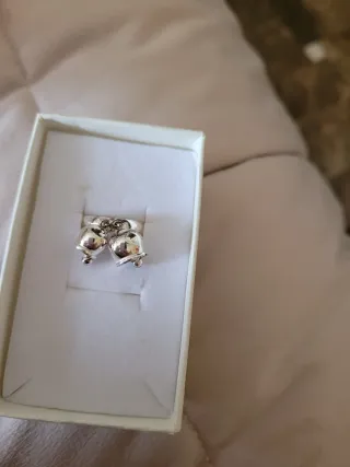 Anello con due campanelle pendenti. - Design a forma di campanella. - Finitura lucida.