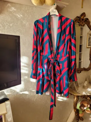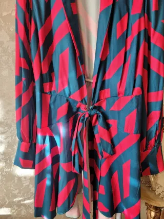 Abito fantasia rosso e blu