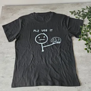 T-shirt con una simpatica stampa. - Stampa PLZ USE IT con un omino che regge un cervello. - Colore nero.