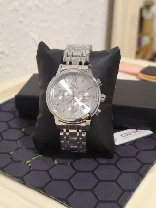 Orologio elegante con cinturino in metallo. - Non è un orologio autentico (si avverte) - Design moderno. - Quadrante nero. - Cinturino a maglie. - Regolazione della lunghezza con consegna di maglie in caso di vendita - Orologio elegante per tutti i giorni o occasioni importanti - Funziona correttamente - Viene fornito con batteria e scatola nuovi - Con alcuni graffi superficiali (non sul quadrante)
