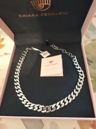 Elegante collana Chiara Ferragni con maglie a catena. - Design a maglie spesse. - Dettagli luminosi. - Chiusura regolabile.