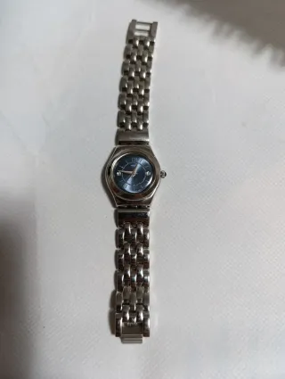 Elegante orologio Swatch Irony con quadrante blu e cinturino in acciaio. - Cassa in acciaio inossidabile. - Cinturino a maglie. - Quadrante rotondo. - Chiusura deployante.