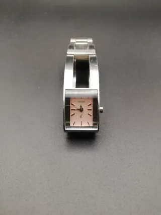 Orologio citizen quadrante rosa salmone Bracciale ampio si possono togliere le maglie Bracciale originale citizen C'è una piccola sbeccatura sul vetro ore 2 ore 3. Orologio usato quindi potrebbe presentare delle righe