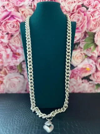 Collana Strediva Bijoux con ciondolo a forma di cuore. - Catena a maglie spesse. - Ciondolo a forma di cuore fiammeggiante.