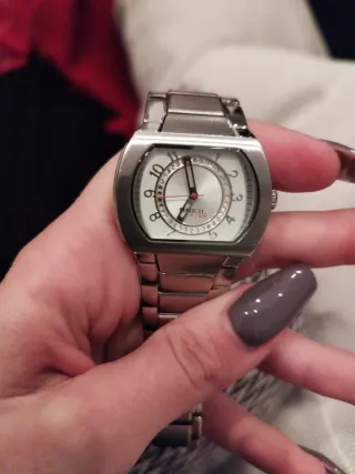 Elegante orologio da polso Breil da donna. - Cinturino in metallo. - Quadrante bianco con dettagli luminosi. È usato ma poco, in buone condizioni, se non ottime e ha dei brillantini per ogni numero nel quandrante. Ho anche le maglie di riserva, se si volesse allargare.