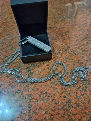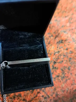 Elegante collana Hugo Boss con pendente rettangolare. Il design moderno la rende un accessorio versatile. - Pendente con texture a righe. - Catena a maglie cubane.