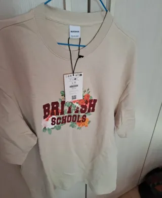 Maglia Bershka a mezza manica con stampa floreale. - Stampa BRITISH SCHOOLS con fiori. - Tessuto morbido e confortevole.