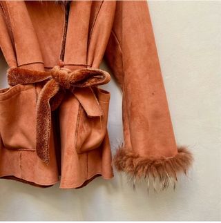 Elegante montgomery in morbido scamosciato con dettagli in ecopelliccia. - Cintura in vita con fiocco. - Bordi delle maniche in ecopelliccia. - Tasche applicate.