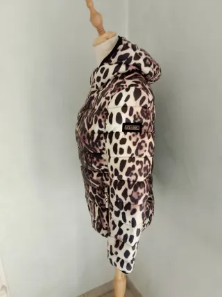 Piumino corto avvitato leopardato Relish tg M cappuccio non staccabile cerniere sul davanti e sulle tasche, logo in metallo sulla spalla