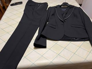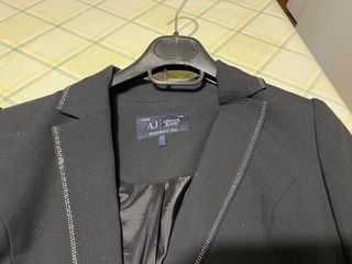 Elegante completo Armani composto da giacca e pantaloni. - Giacca monopetto con dettagli sul collo. - Pantaloni dal taglio classico.