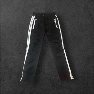 Pantaloni sportivi neri con dettagli a contrasto. - Zip sulle tasche. - Strisce bianche laterali. - Coulisse in vita.