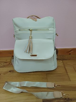 Zaino da donna in ottime condizioni, mai usato. - Dettagli in ecopelle. - Ciondolo a nappa decorativo. - Tasca frontale con zip. - Tracolla regolabile inclusa. NUOVO MAI USATO