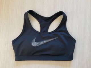 Reggiseno sportivo Nike come da foto. Praticamente nuovo, solo una piccola macchiolina come da foto a fianco del logo. Usato 1 volta ma troppo piccolo. Tessuto confortevole. Taglia S