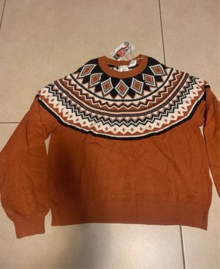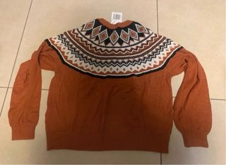 Maglione da donna con un bellissimo motivo fair isle sul collo e sulle maniche. - Fantasia geometrica colorata. - Maniche lunghe. - Collo rotondo. marchio Up2fashion