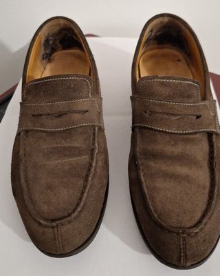 Eleganti mocassini da uomo beige. Perfetti per completare un look casual o più formale. - Materiale scamosciato. - Dettagli di cucitura a contrasto. - Interno in pelle.