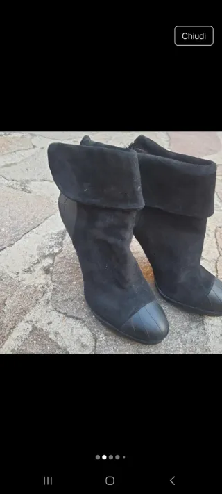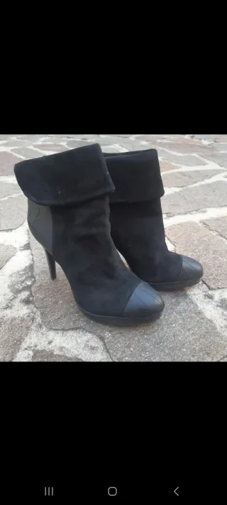 Eleganti stivaletti Calvin Klein in camoscio nero. Numero 36, usati una sola volta - Dettagli in pelle. - Tacco a spillo. - Plateau anteriore. - Gambale risvoltato.