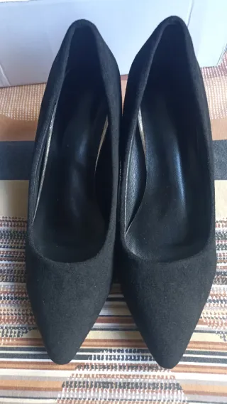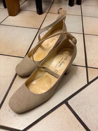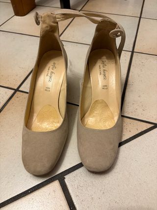 Eleganti décolleté con tacco largo. - Materiale scamosciato. - Cinturino alla caviglia. - Made in Italy. Pari al nuovo, usate 3 volte e tenute sempre nella scatola.