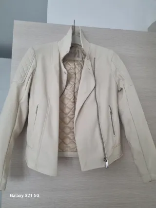 Elegante giacca Guess color beige, perfetta per completare il tuo look. - Dettagli trapuntati sulle spalle. - Collo in pelliccia sintetica rimovibile. - Chiusura asimmetrica con zip. - Fodera interna trapuntata.