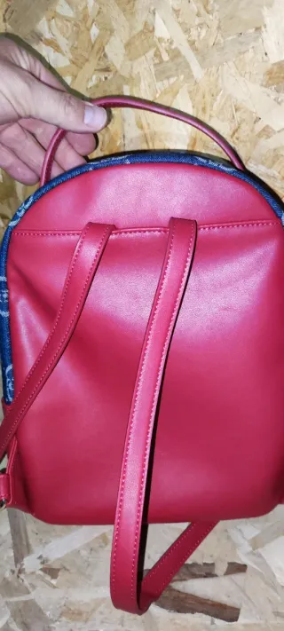 Zainetto Liu Jo con una fantasia monogramma su base denim. Presenta dettagli in ecopelle rossa e una striscia centrale bianca e rossa. - Fantasia monogramma. - Dettagli in ecopelle rossa. - Striscia centrale decorativa. Una pochissimo