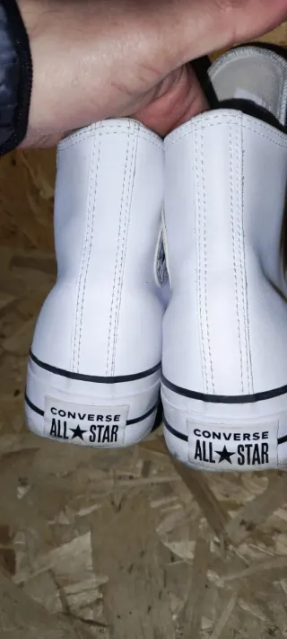 Scarpe Converse modello platform. - Tomaia in tessuto bianco. - Suola alta in gomma con inserti marroni. - Logo Converse All Star sul lato. Devono solo essere pulite