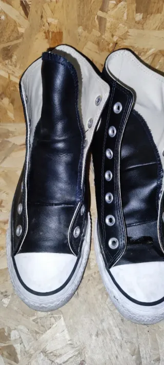 Scarpe alte Converse All Star in pelle. - Design classico. - Dettagli a contrasto. Senza lacci