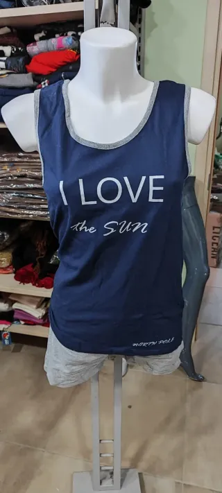 Pigiama da donna con stampa floreale. - Girocollo con bordino grigio. - Stampa love sul davanti. - Tessuto in cotone.