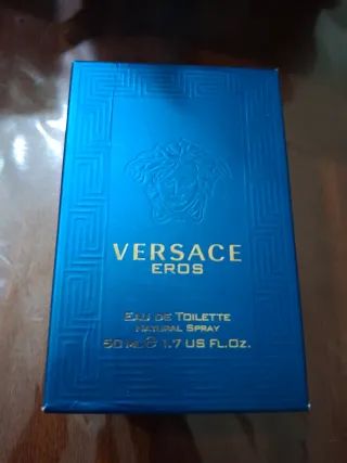 Profumo Versace Eros Eau de Toilette Natural Spray. - Fragranza da 50 ml. - Confezione color blu e oro.