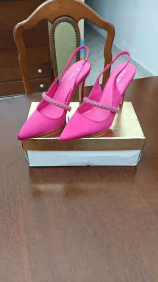 Eleganti décolleté in raso con dettagli in strass. Si presentano in ottime condizioni. - Materiale: Raso - Decorazione: Strass - Modello: Slingback con tacco