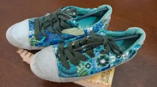 Sneakers Desigual con un vibrante diseño. - Fantasia con motivos florales y paisley. - Combinación de tonos azules y verdes. - Cierre con cordones.